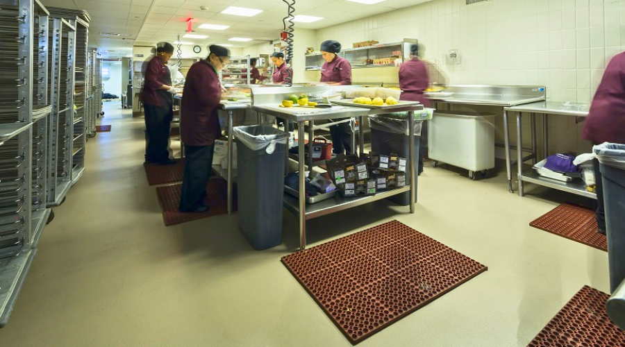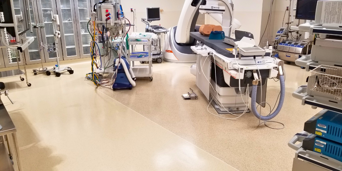 Los pisos de uretano proporcionan una superficie ergonómica y que reduce el ruido, perfecta para espacios sanitarios.