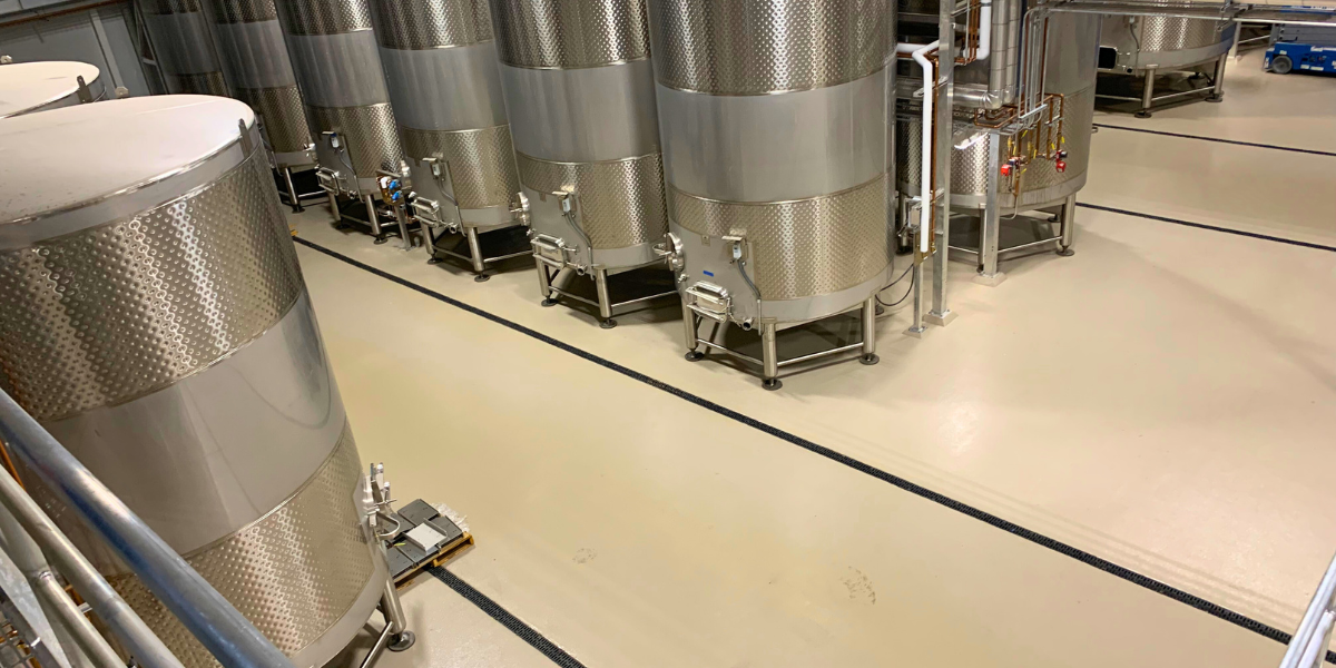 Un piso de uretano en la sala de tanques de una cervecería puede brindar la protección necesaria contra derrames e impactos fuertes.
