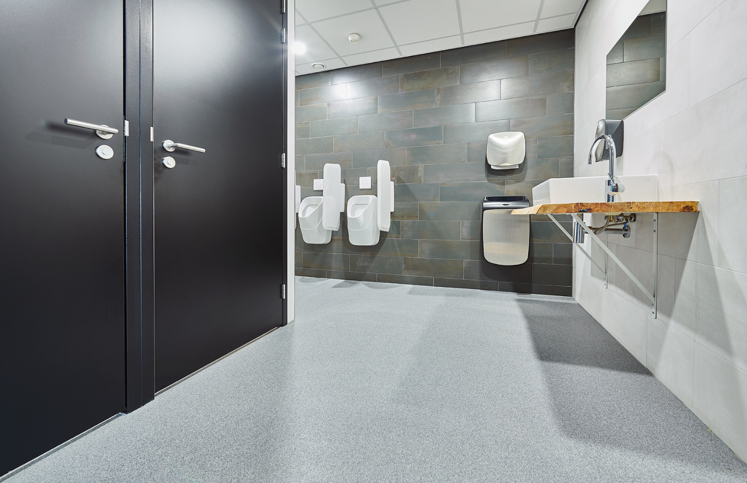 Los suelos resinosos resistentes al agua pueden hacerse antideslizantes incorporando aditivos antideslizantes en la capa superior. Esto garantiza la seguridad incluso cuando el piso está mojado.